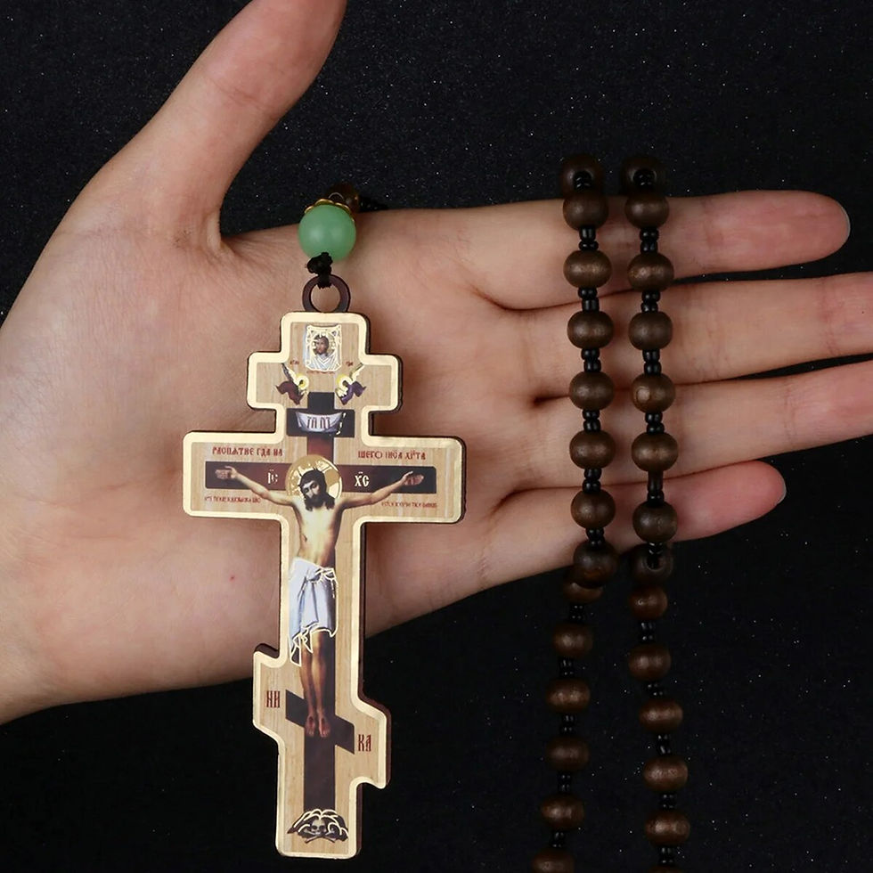 Wooden Prayer Beads with Three-Bar Cross