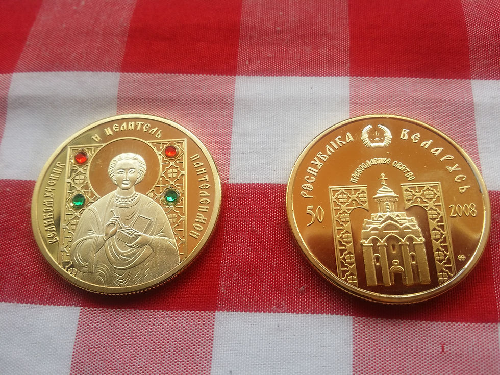 Belarusian 24k gold plated coins with jewels and embossed saints