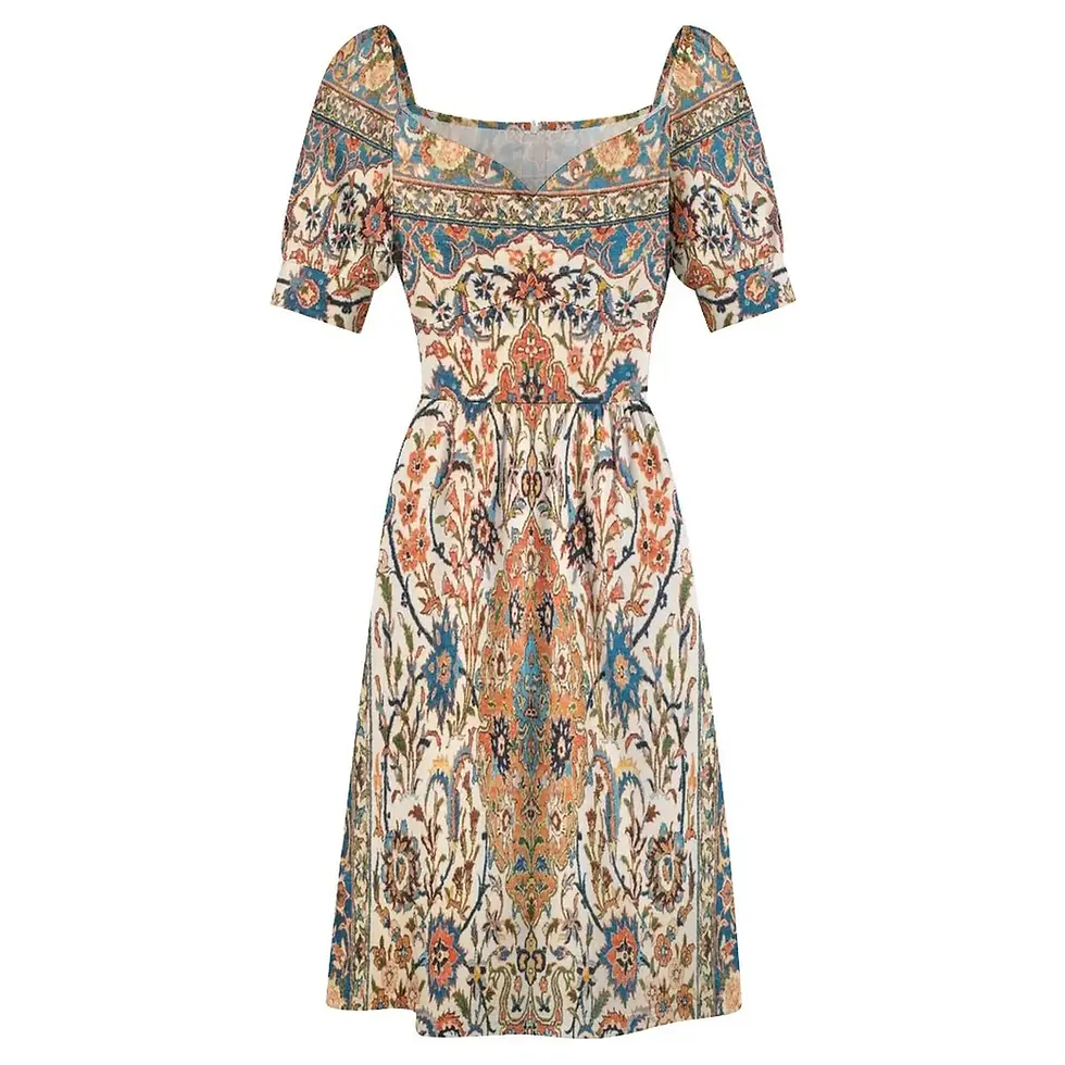 Modest Summer Dress with Bakhtiari Persian Rug Pattern
